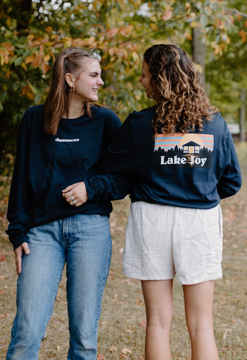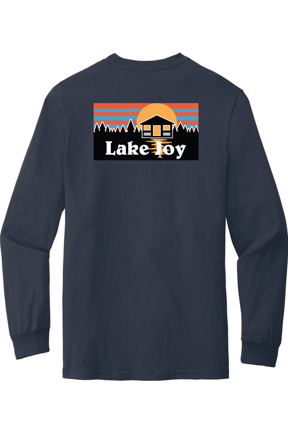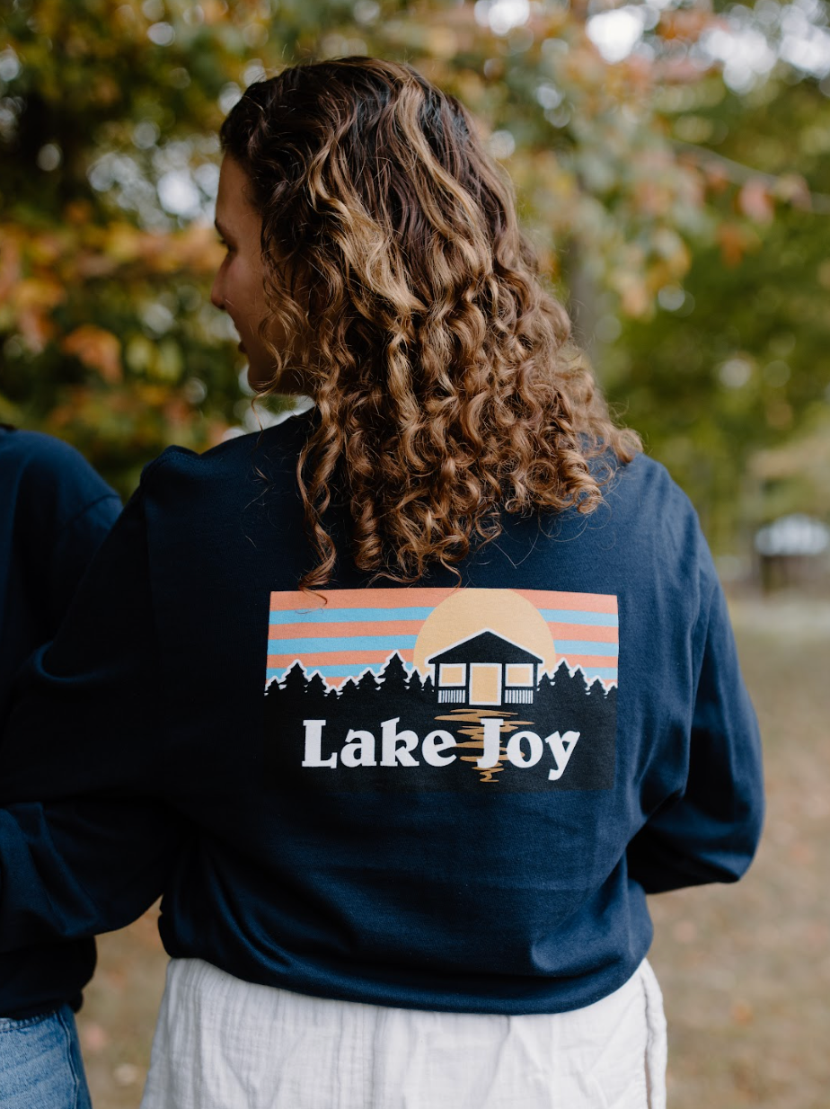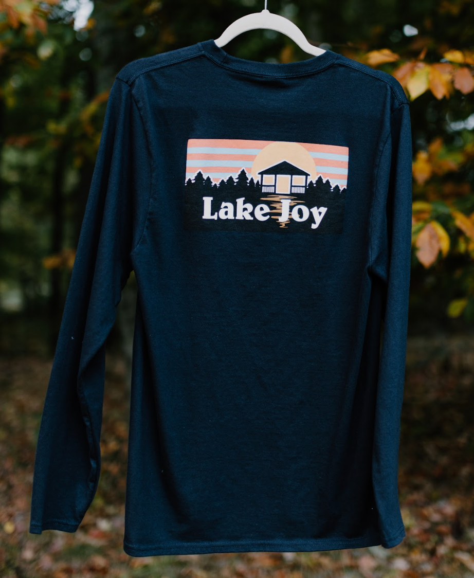 Enjoy this Lake Joy long sleeve that offers a beautiful picture of a sunset on our joy-filled lakefront.